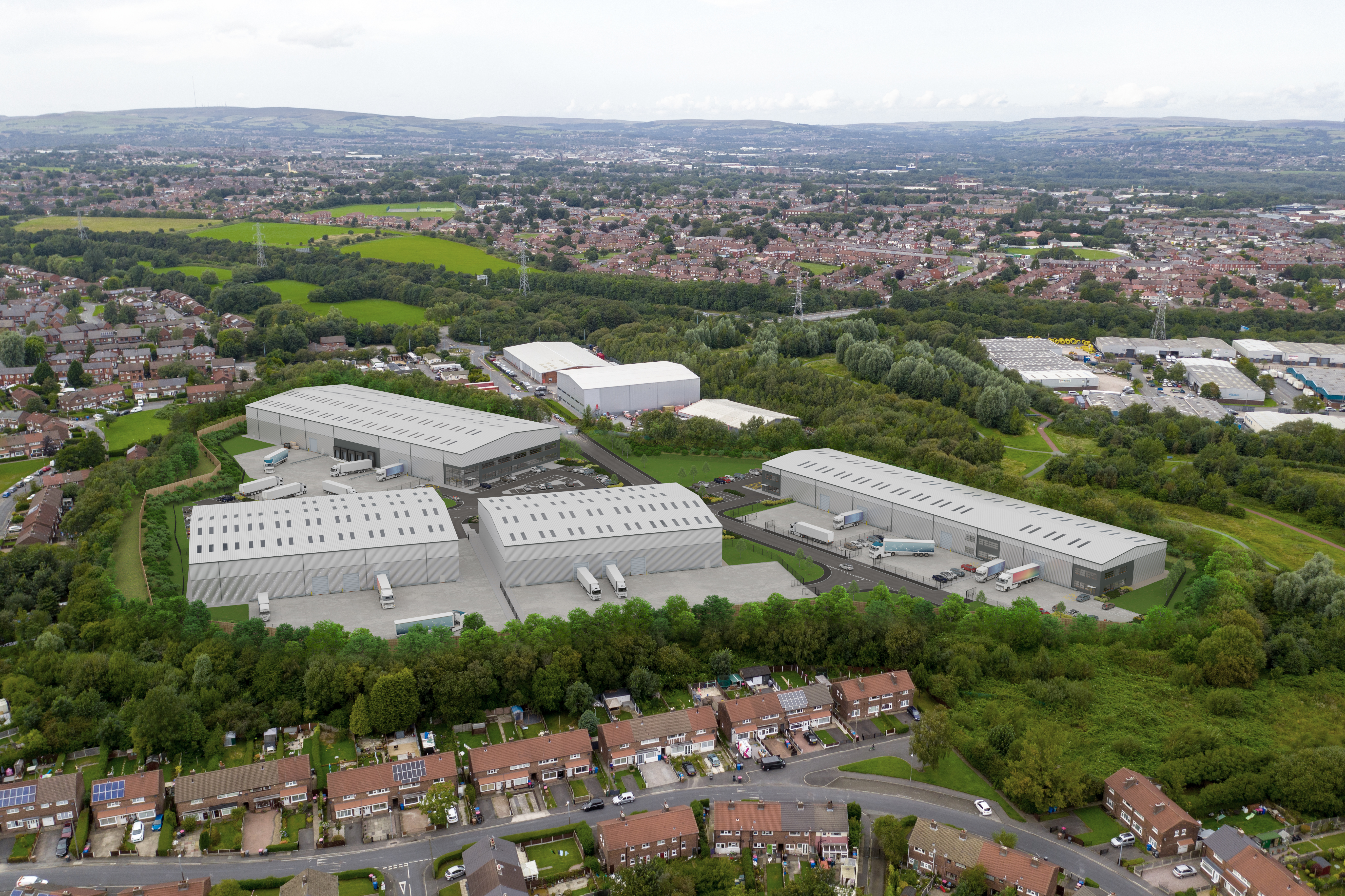 Network Space has completed a 172,000 sq ft speculative industrial scheme comprising 3 detached, self-contained units ranging from 29,500 - 61,000 sq ft, along with a terrace of a further 3 units ranging from 11,000 – 19,000 sq ft. Each offers high quality warehouse space, extensive secure yards and dedicated car parking, along with office accommodation and amenities. The larger units provide 10 metre eaves height with the biggest unit offering 5 dock level access doors, as well as trailer parking spaces.