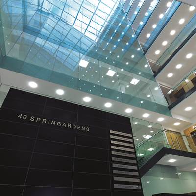 At the ground floor, the accommodation is designed to offer an option of two entirely self-contained office/retail suites entered directly from Spring Gardens. A stunning spacious atrium runs through the building to optimize natural light.