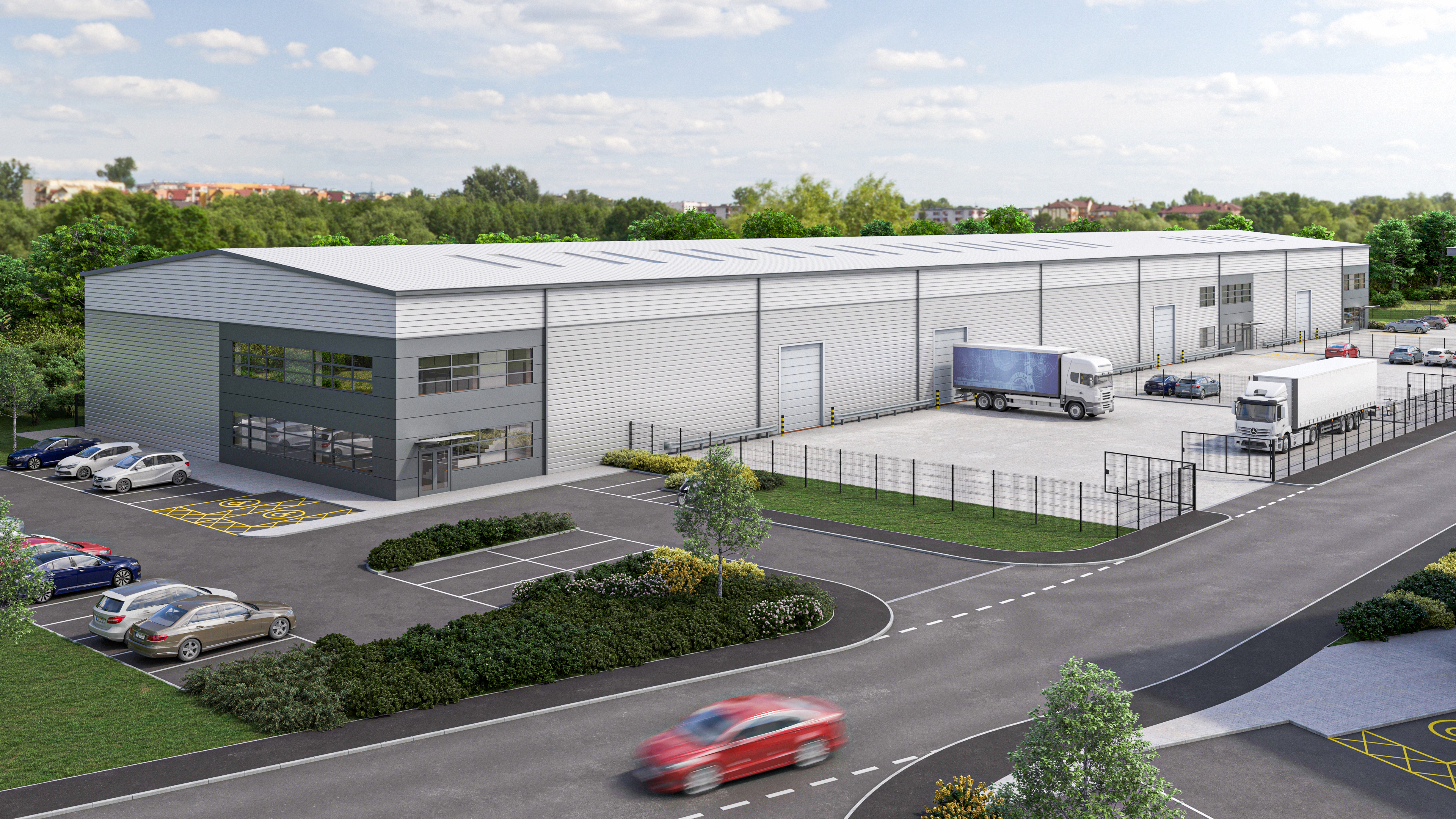 Network Space has completed a 172,000 sq ft speculative industrial scheme comprising 3 detached, self-contained units ranging from 29,500 - 61,000 sq ft, along with a terrace of a further 3 units ranging from 11,000 – 19,000 sq ft. Each offers high quality warehouse space, extensive secure yards and dedicated car parking, along with office accommodation and amenities. The larger units provide 10 metre eaves height with the biggest unit offering 5 dock level access doors, as well as trailer parking spaces.